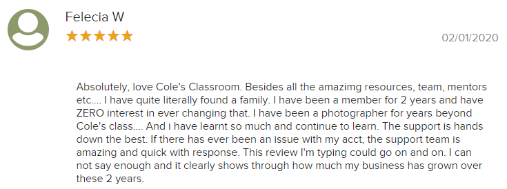 **Important** Read All Details & Fine Print Below: Want to Go Behind the Scenes with a Pro on an Actual Family Portrait Session? Get Access to Our "Backstage Pass" + Access to Over 35 Courses for Only 1 Penny. For just 1 cent today you’ll get instant & unlimited access to over 35 comprehensive courses (each sell on their own for $79-$299) + over 200 quick & easy photo training videos PLUS access to our members only coaching forum. Whether you need help with mastering your camera, posing, Photoshop, Lightroom, Lighting, Off-Camera Flash, Business or Marketing - we got you covered! Personalized help is important so each and every week we host a variety of different training and coaching available exclusively to Cole's Classroom Pro members. The "Fine Print" - You will get unlimited access to "CC Pro" for 10 days & on day 11 you will be automatically enrolled into our membership for $49 a month until you cancel. You can cancel anytime you'd like, without penalty from inside the members area or by writing into support at support@colesclassroom.com. Please note, since Cole’s Classroom Pro has a $0.01, 10-day trial with unrestricted access, there are no refunds provided for any Cole’s Classroom Pro membership payments.